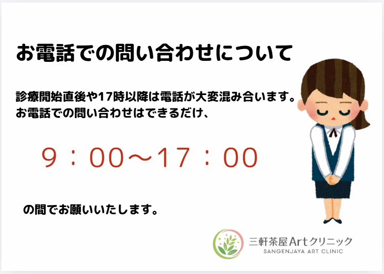 お電話は9:00〜17:00の間でお願いします